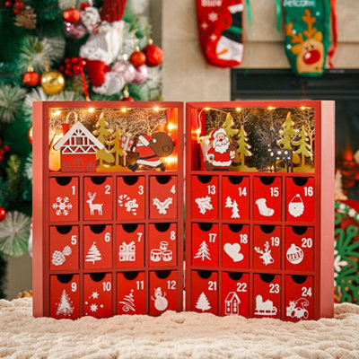 Livingandhome Red Wooden Advent Calendar Book 24 Days to Christmas