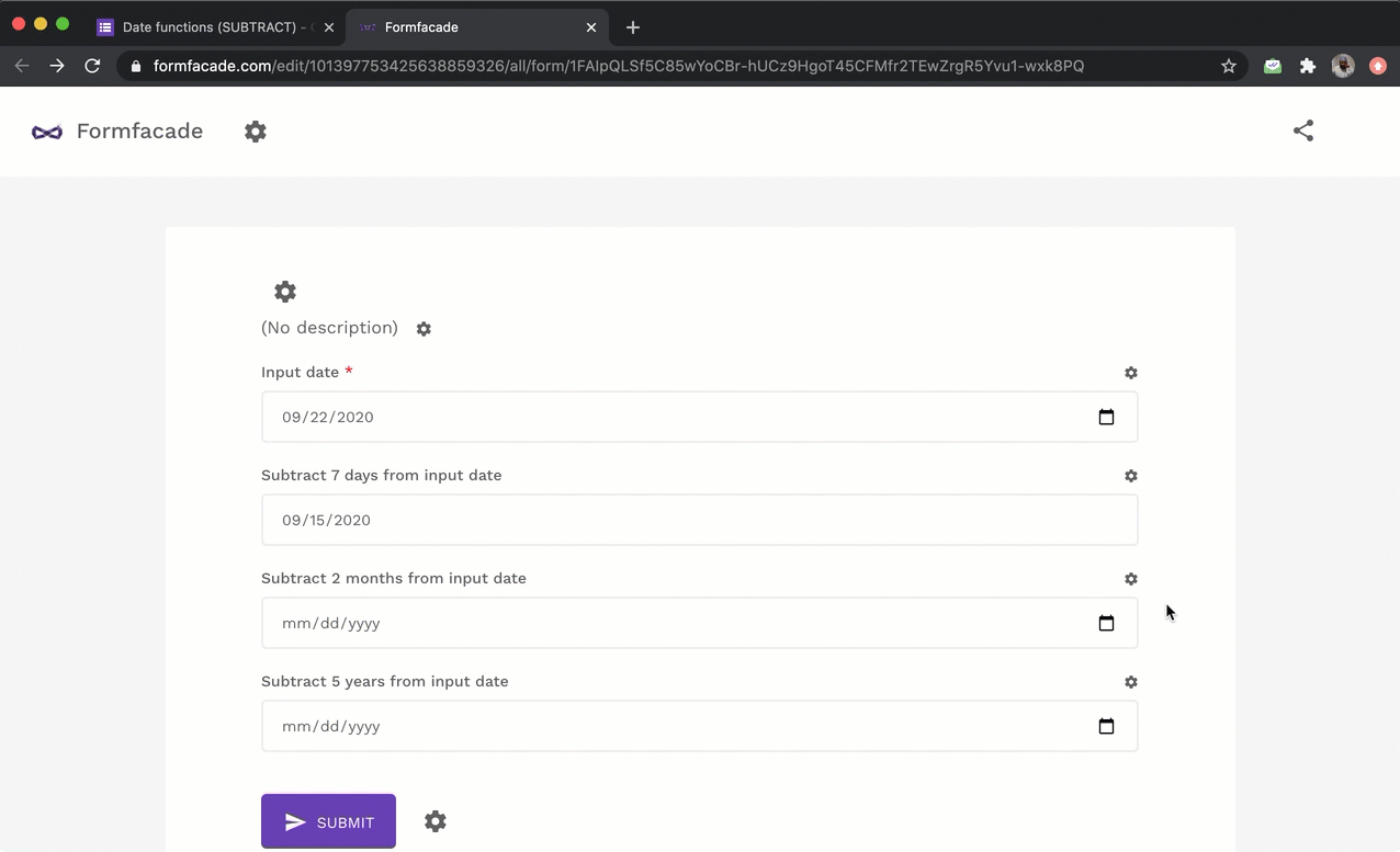 Formfacade How to subtract days, months or years from a date?