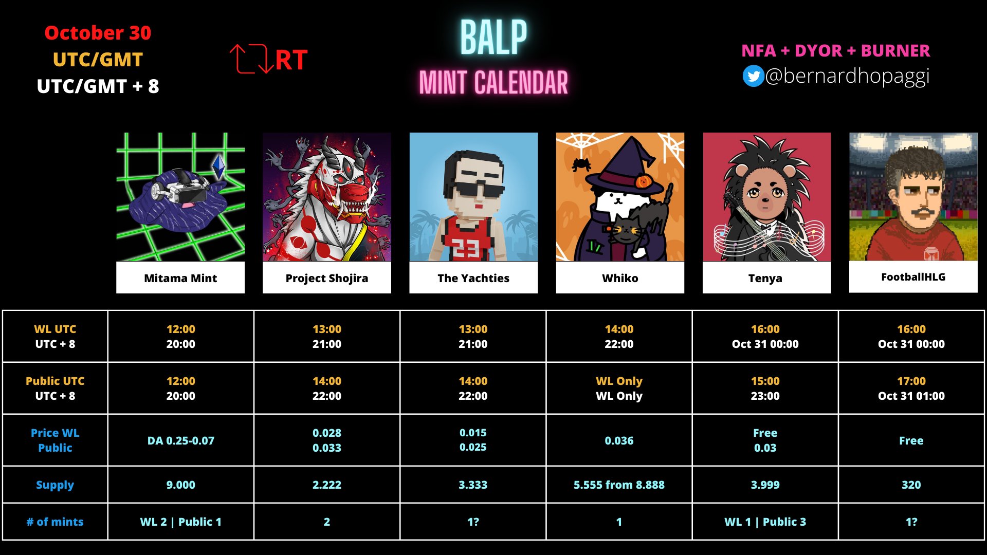 BALP MINT CALENDAR on Twitter "Eth drops October 30 mintmitama