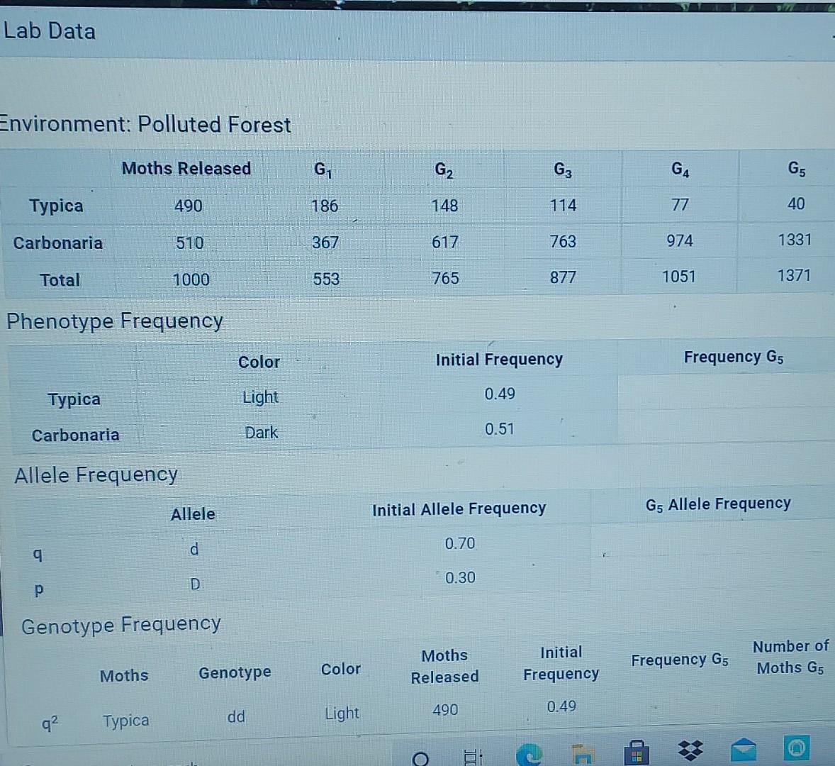 Solved Lab Data Environment Polluted Forest Moths Released