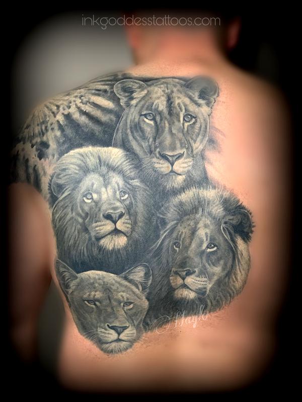 “The Lions Den” Lion Pride back piece by Haylo by Haylo TattooNOW