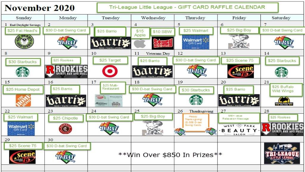 Calendar Raffle TriLeague Little League (Powered by Donorbox)