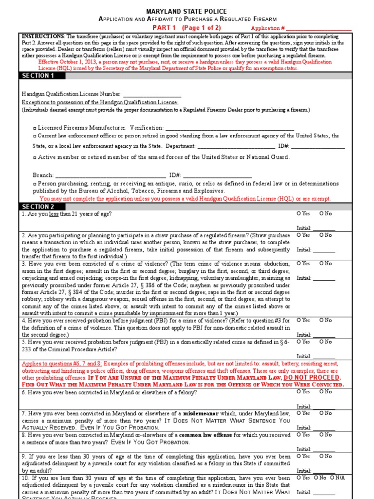 Web the following most commonly requested forms are available for downloading from our web site. This form contains questions asked by the maryland state police when determining if a person is eligible to possess a firearm. Web i noted that on the proposed form 77r it mentions the exemptions for a hql include either being an active duty military service member or retired. You must have a portal account to.