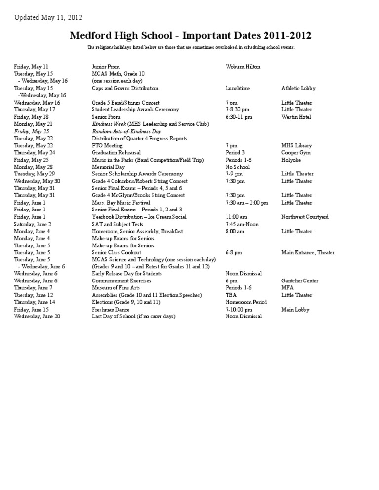 MHS Calendar of Important Dates Updated May 11, 2012 PDF