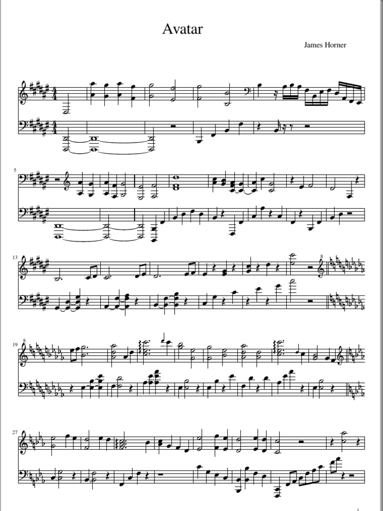 Avatar piano sheet music kyle landry
