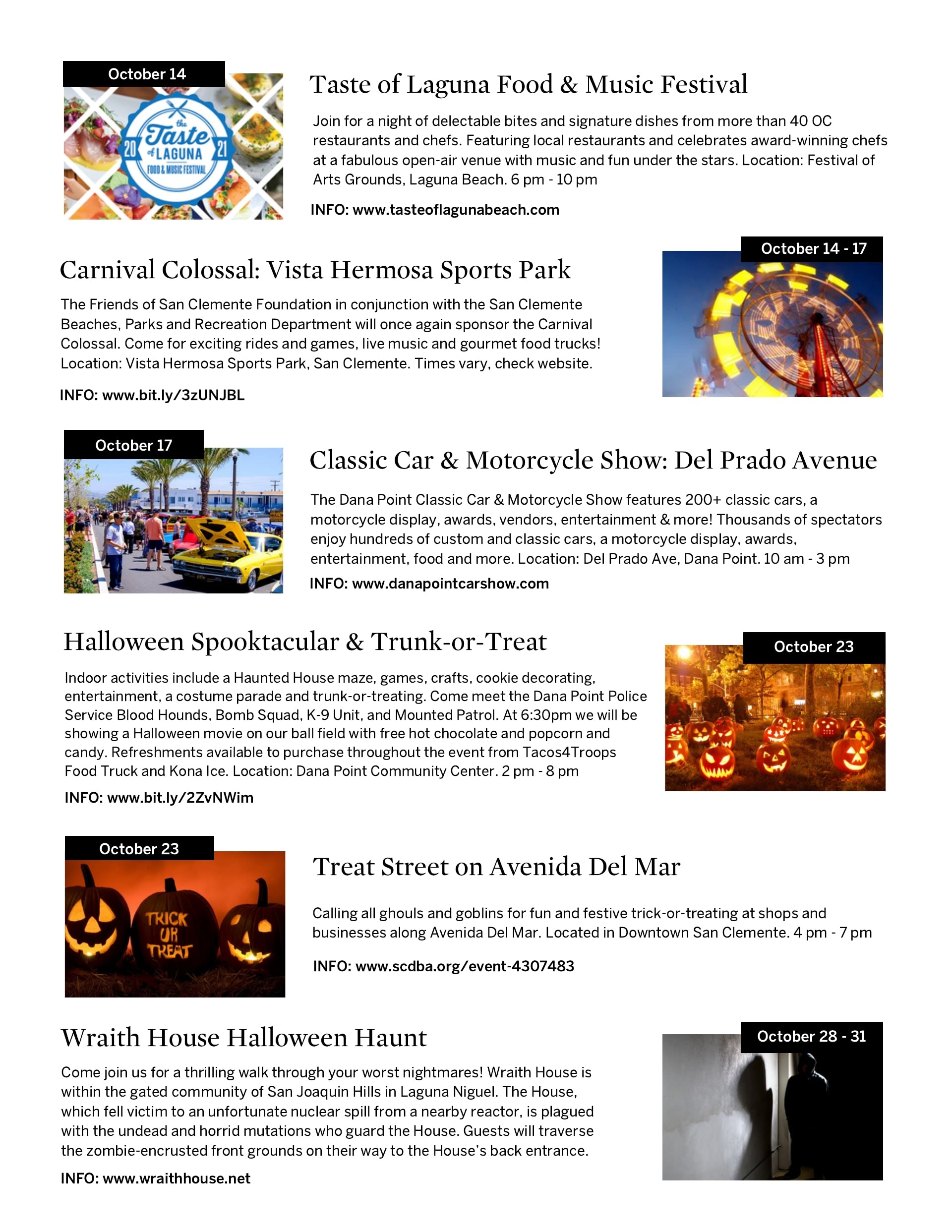 October Calendar Of Events