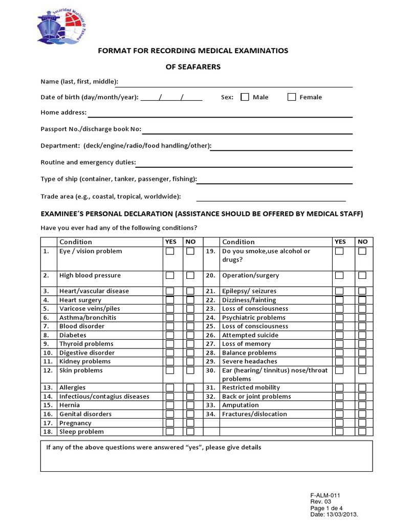 Medical Examinations Form PANAMA Blood Pressure Physical Examination