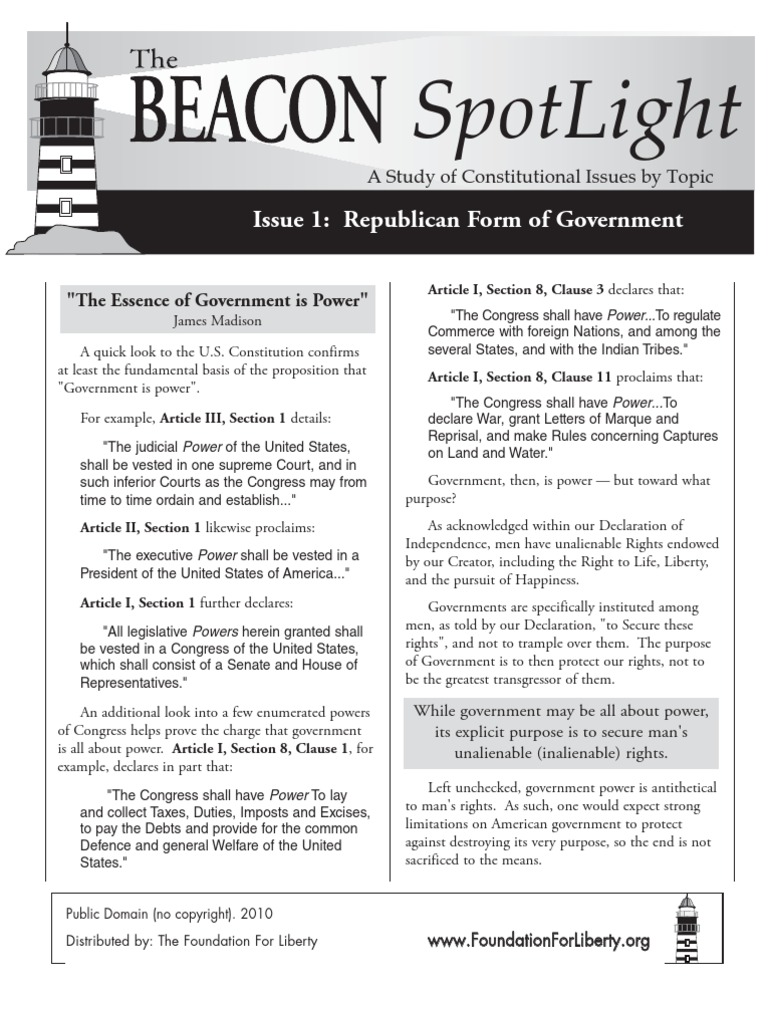 The Beacon Spotlight Issue 1; Republican Form of Government Article