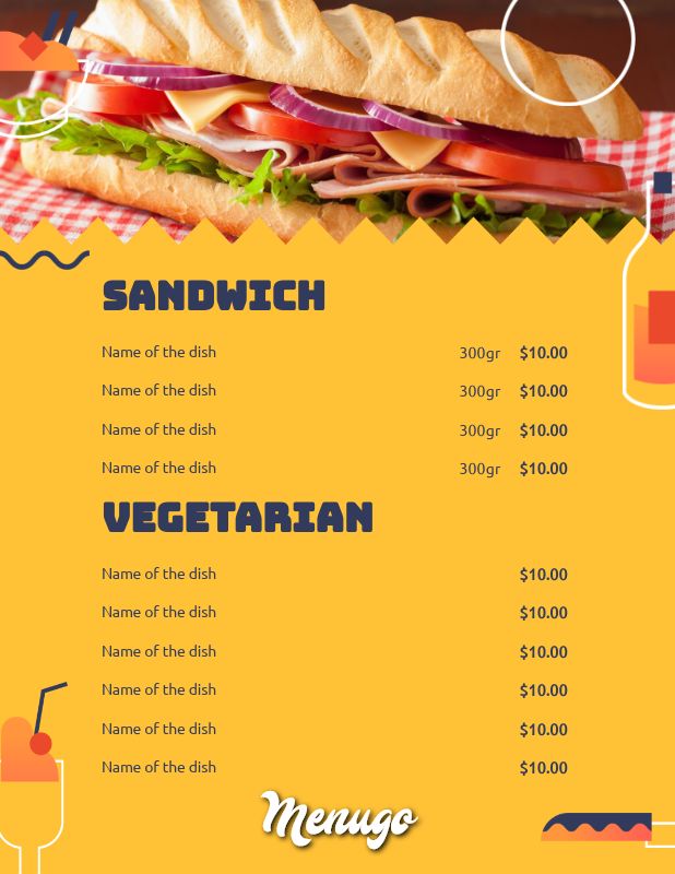 Menugo Sandwich Menu Template