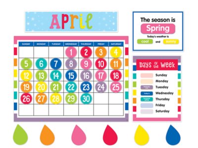 Web This Calendar Bulletin Board Set Makes It Easy To Keep Track Of The Schedule, The Seasons And The Weather—Featuring Pretty Colors, Fun Patterns And A Touch Of.