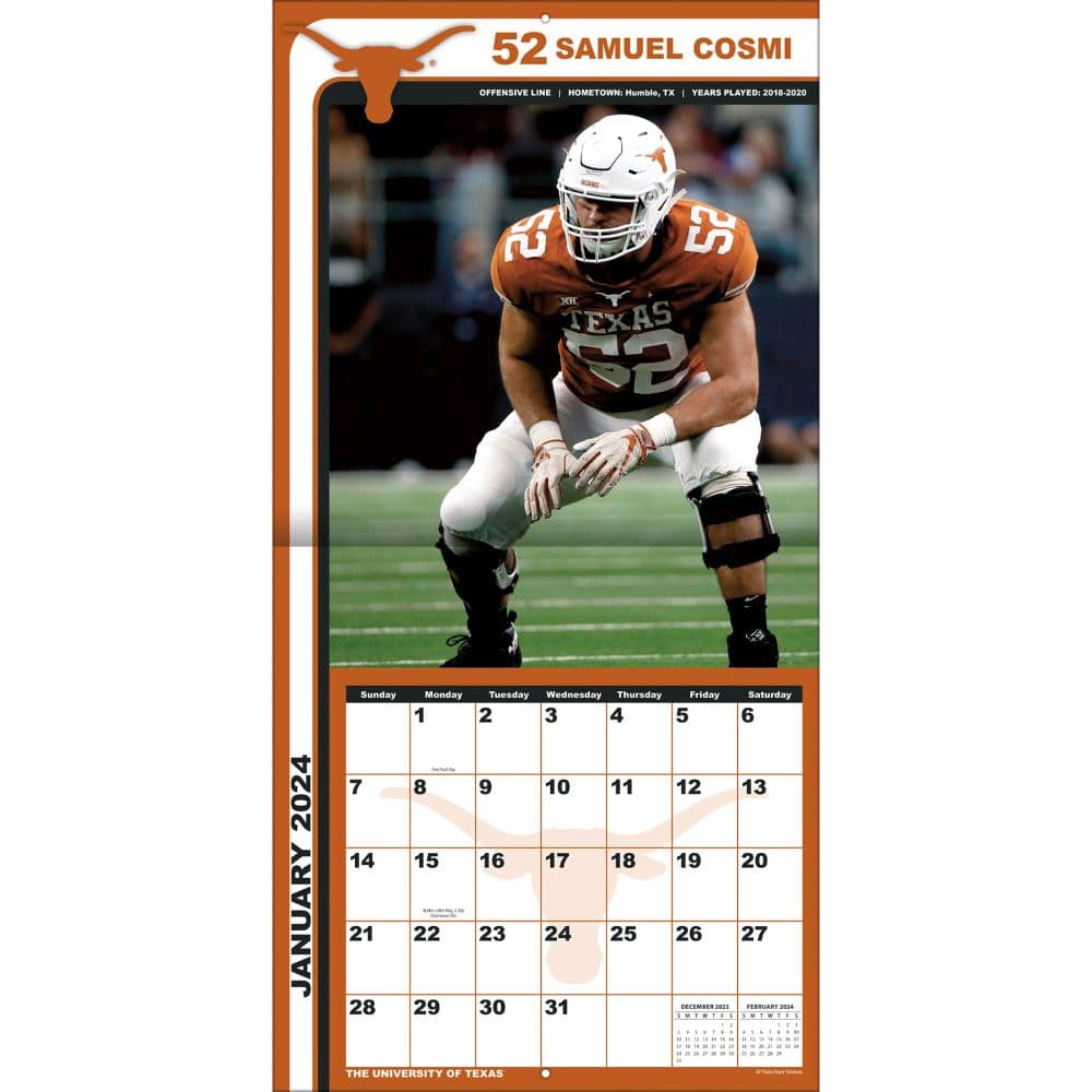 COL Texas Longhorns 2024 Wall Calendar