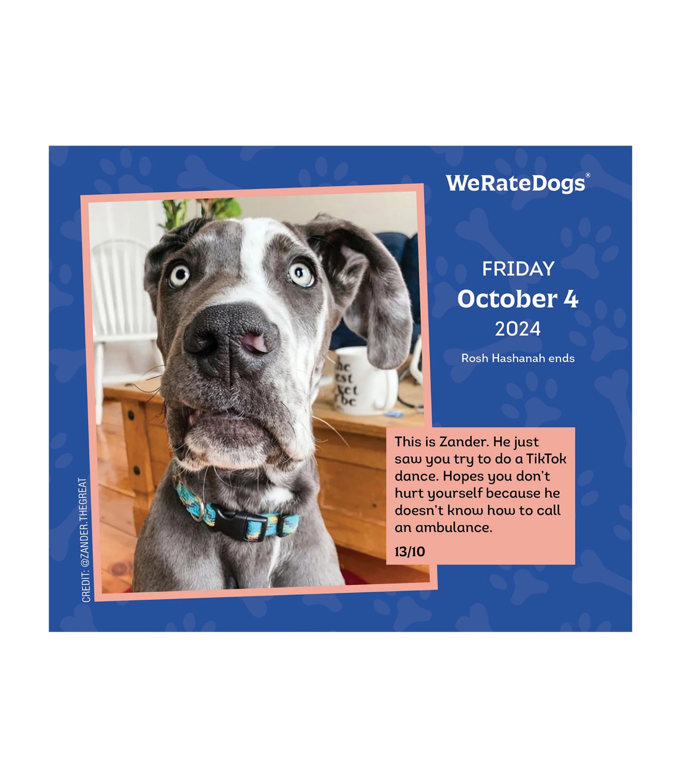 This is a 2024 calendar. Each page of this calendar showcases. Please make sure you are ordering the correct year. The official merchandise store for weratedogs | @dog_rates. See all formats and editions.